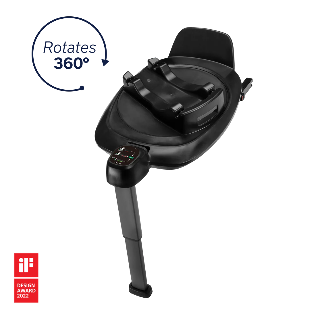 - 360° rotation for easy harnessing and NEXT system car seat installation with just one click.